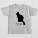 Gatos são perfeitos. Silhueta de gato preto sentado acima da palavra "Purr-fect". A cauda fica no final do texto.