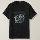 Um criativo "Obrigado" escrito em letras brancas no estilo do giz sobre um fundo preto em forma de quadro negro. Um olhar único e artístico para a camiseta Mens.