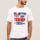 Votem em qualquer um, menos Trump nas eleições de 2024 para se manterem patriotas. Republicanos e Democratas precisam se unir contra Donald Trump e votar em Joe Biden para que possamos manter a América segura. Bandeira americana numa camiseta política com mensagem anti-Trump.