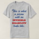 Isto é que pessoa com uma inabilidade invisível olha como… o IE: exatamente como qualquer um outro. Vestir esta camisa quando você é doente de obter o abuso para usar sua licença deficiente do estacionamento. Chicoteie-a para fora para agarrar um assento tão necessário no transporte público sem os olhares desagradáveis. Dê-o a todos seus amigos ao desgaste, assim que podem mostrar ao mundo que as inabilidades invisíveis são apenas que - invisível!