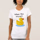 Um pato amarelo brilhante com as citações engraçadas: Que o pato?