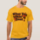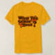 Que você Talkin" 't-shirt do ataque. Alaranjado, vermelho e amarelo, com ponto de interrogação grande.