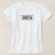 Rainha T-Shirt. Camisa clara com a palavra Rainha em texto escuro cercada por uma caixa preta