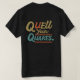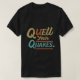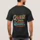 Um design de camiseta vibrante com o texto "Quell Your Quakes" em um estilo de grafite ousado e multicolorido.