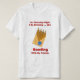 Esta camisa amusing do jogador da cerveja mostra as garrafas de cerveja que substituem os pinos de boliche. Uma bola de pressa está a ponto de fazer uma greve. O subtítulo diz: "Quinta-feira à noite eu vou beber… a boliche de Uhh com meus amigos."