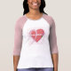 Camiseta feminina mangas raglan 3/4 da Bella+Canvas, Branco/Cor-de-rosa, Adulto P