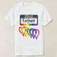 Esta festiva bandeira orgulho gay do arco-íris abraçou a camiseta com corações em camadas facilita ao pai de uma noiva misturar-se aos convidados e à festa de casamento. Coloridos, eles se destacarão no chá de casamento e ensaiarão fotos e vídeos jantes. Pai vai gostar de fazer especial de casamento com uma camisa de crachá dizendo "Olá, eu sou o Pai da Noiva." Celebrar chás, cerimônia e aniversário em uma camisa divertida com uma vibrante bandeira do arco-íris como símbolo de amor. Este orgulho LGBT, bandeira do arco-íris, nome de casamento crachá, é adequado para fundos brancos e leves.