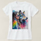 bela mulher em óculos de sol com lobo em cores arco-íris