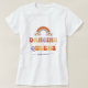 Divirta-se na festa de solteira com esta camiseta legal, com arco-íris retrô, margarida, fonte e texto personalizado à sua escolha. Adicione facilmente seus próprios detalhes clicando na opção "personalizar" este modelo.