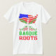 Mapa dos EUA com bandeiras do País Basco e norte-americanos se misturaram com o texto Basco Roots em vermelho e verde.