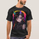 Garota de Anime Gótico Arrependido. Gradiente do arco-íris, cores néon brilhantes e preto. Ela tem uma aparência de estilo gótico, com brincos nos ouvidos eleves e acessórios pretos. Ela tem cabelos pretos e realces. arco-íris, punkrock, glamoure, glam rock, rockstar, kpop, idol, aidoru, cabelo arco-íris, presas, vampiro, vampiro, gritante, colorido, atordoante, psicodélico