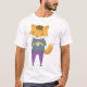 Raposa de cartoon em jeans a tomar uma xícara de chá