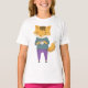 Raposa de cartoon em jeans a tomar uma xícara de chá