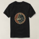 design de camiseta geométrica do lobo, tipo vintage, com um efeito angustiante e desenhado à mão com tons de terra e um sutil fundo de explosão solar. 🐺 🌞