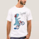Este design lúdico e imaginativo apresenta um T-Rex, o dinossauro icônico, humorosamente engajado em uma atividade moderna — andando de bicicleta vermelha. O dinossauro é representado em uma pose de remos-médio, vestindo um capacete vermelho para segurança, o que aumenta a natureza caprichosa da imagem. Como visto na t-shirt de Gavin, as cores vibrantes do T-Rex e da bicicleta destacam-se, fazer este design, tanto atraente como divertido. Este gráfico é perfeito para uma camiseta casual destinada a fãs de dinossauros e ciclismo, combinando aventura e proeza pré-histórica de uma forma reluzente.
