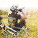 pintura por sol de uma bicicleta no deserto cercada por cactos