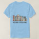 This bookish T-shirt features a cozy watercolor row of vintage-style books with two curious cats peeking between the spines and curled beside them, perfect for readers who love both stories and felines.