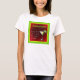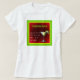 Receita de uma receita de bebida kamikaze. Uma borda amarela e verde limão com um plano de fundo vermelho de estilo verde. Um desenho de um vidro martini com um limão na borda.
