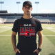 Nome personalizado de futebol e Camisa de número de jogador T para Pai - Mostrado no Design preto para pais de futebol e fãs apresenta cartazes personalizados com capacete, detalhes de pontos de futebol, listras e texto personalizado que podem ser personalizados com um nome de equipe e o número do jogador. As cores vermelha e branca podem ser modificadas.