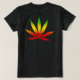 © Sunny Mars Designs. Camisetas de folhas verdes amarelas e vermelhas rasta rasta - Legal camisas personalizadas jamaicanas reggae Rasta com uma silhueta de uma folha rastafariana em cores amarelas, amarelas e vermelhas da Jamaica.