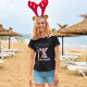 Este Tee é muito fofo. O escrevendo colorido está na frente e atrás. A rena é adorável, e com certeza faz todos sorrir.