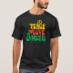 Digite design de PEACE, LOVE & MUSIC com guitarra, Símbolo de Paz, Notas de Coração e Música em amarelo, vermelho e verde.