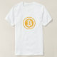 Logotipo Dourado de BitCoin impresso na camisa branca.