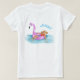 Camiseta Relaxando em uma piscina num flamingo rosa flutuan