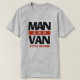 Divulgue-se como um homem com uma Van vestindo uma camisa que funciona como publicidade Promocional. Camisa de motorista para vestir o homem da van branca. Tem seu número de telefone na frente e atrás, mais seu nome no verso.