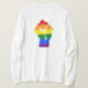 Este design é um símbolo familiar de solidariedade em protesto e resistência: um punho elevado. Aqui o punho é colorido nas listras do arco-íris para torná-lo um símbolo LGBT de solidariedade e resistência contra o ódio e a discriminação que a comunidade enfrenta.