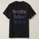 Respire, Acredite, Alcance. Este design de capacitação serve como um lembrete diário para se manter calmo, confiar em si mesmo e trabalhar para seus objetivos. Com uma tipografia moderna e limpa, a mensagem é clara: respire através de desafios, acredite em seu potencial e alcance coisas excelentes. Feita com tecido macio e confortável, esta t-shirt é perfeita para o veste quotidiano ou durante momentos em que é necessário aumentar a confiança. Vista-o como um mantra para o sucesso e deixe esta camisa inspirar você e outros a continuarem avançando!