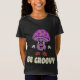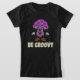 Spread good vibes with this "Be Groovy" t-shirt, featuring a charming, vintage-style purple mushroom character reminiscent of classic 70s cartoons.