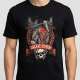 Delije Sever 1989 Ultra T-Shirt – Crvena Zvezda hooligan design. This bold black t-shirt features a fierce hooded ultra with baseball bat, red scarf, skull and laurel wreath banner 'DELIJE SEVER'. Perfect for true Red Star Belgrade fans and members of the legendary Delije Sever group. Aggressive vintage style that captures the passion and loyalty of Marakana ultras. Must-have apparel for every Crvena Zvezda supporter