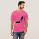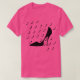 Este design para ventiladores de moda tem calçados de alto salto para cima impressos em um esquema de cor rosa e preto.