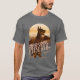 Design impressionante, ao estilo retrógrado, de um Doberman Pinscher, com um fundo de montanhas e um grande gráfico solar, tudo em tons monocromáticos de ouro, através do castanho. Uma fonte decorativa de grande porte nomeia a raça do cão. Procure ID754 para ver outras opções de cor e raças adicionais de cães neste estilo.