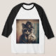 Camiseta Básica, Mangas Raglan 3/4, Branco/Preto, Adulto G