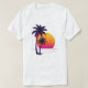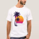 Um pôr do sol vibrante ao estilo retrô, com néon-cores brilhantes e silhuetas de palma, perfeito para as vibrações do verão e amantes da safra