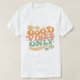 This design radiates positive energy with the phrase "Good Vibes Only" in a bold, retro font, accompanied by vibrant elements such as flowers, a radiant sun, and scattered stars. Its combination of warm and striking colors makes it a perfect piece for those looking to convey optimism and joy with their style. Ideal for those seeking a design about emotional well-being, motivation, self-expression, and alternative fashion, this design resonates with people who value a positive attitude and vintage aesthetic in their accessories and clothing. Its psychedelic, '70s-inspired feel makes it ideal for followers of bohemian fashion, modern hippies, and decor with a nostalgic touch. Available on products such as t-shirts, mugs, posters, and stickers, this design is an excellent choice for those looking to surround themselves with good energy and retro style. Its versatility makes it a unique gift for friends, family, and lovers of graphic art with a motivational message.