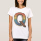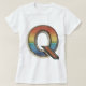Esta design de camiseta atraente apresenta a letra "Q" adornada com um vibrante gradiente do arco-íris. A letra "Q" é esboçada num estilo de vintage com uma borda preta, e o seu corpo é preenchido com faixas horizontais que transitam através de um espectro de cores de vermelho, laranja, amarelo, verde, azul, a roxo. A parte interna da letra tem um padrão detalhado de pontos que adiciona textura e profundidade ao design. Esta design combina uma estética retrorreflectora com uma reviravolta moderna, fazer-a como uma adição única e na moda a qualquer armário.