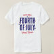 Agora você pode comemorar o estilo do 4 de julho deste ano com uma t-shirt personalizada! Mostre seu espírito patriótico com 'Quarto de julho' escrito em uma fonte ousada, acompanhada de encantadoras estrelas vermelhas e azuis. Personalize ainda mais a camisa adicionando seu nome de família ou 'Reunião da família' — perfeito para sua reunião de verão com os que você ama. Celebre o Dia da Independência como nunca antes com esta t-shirt especial!