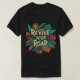 Um design de camiseta vibrante com o texto "Reviva o seu carro" em um padrão ousado e multicolorido, que se rompe com energia.