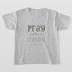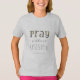 Camiseta com verso curto, mas poderoso, das escrituras de 1 Salónica 5:17, "Reze sem parar" numa fonte moderna contadora de histórias com sotaque amarelo na palavra Reze.