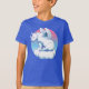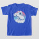 Um rinoceronte branco com asas de anjo, sentado na nuvem no céu. Rinocerontes Conservation Awarness design gráfico para camiseta infantil.