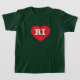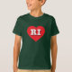 Esta camiseta apresenta um coração vermelho vibrante contendo as letras maiúsculas, brancas e em negrito RI, a abreviação oficial de Rhode Island, o estado do oceano.