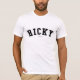 Ricky! É seu nome Ricky? Ou você tem um marido, um namorado, um membro da família masculino ou um homem Ricky nomeado amigo? Em caso afirmativo, esta camisa da "bandeira" é exatamente o presente que você está procurando! As características de design "Ricky" na rotulação preta arqueada através da caixa na pia batismal clássica da faculdade.