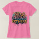 Esta t-shirt apresenta a mensagem "Rise Acima Inspire Other" num gradiente multicolorido vibrante. Cada palavra é uma cor ousada diferente, criando um design dinâmico e atraente.