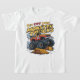 Um caminhão monstruoso com lágrimas de rodas enormes através de um campo de sujeira robusto, chutando nuvens de poeira em seu acordar enquanto conquista o terreno acidentado com facilidade.