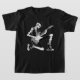 Um personagem robô toca energeticamente um violão elétrico enquanto veste uma jaqueta preta, tênis e o violão conectados diretamente à sua cabeça. As cores brilhantes realçam o violão e os calçados, adicionando uma vibração dinâmica.
