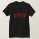 Rocco! É seu nome Rocco? Ou você tem um marido, um namorado, um membro da família masculino ou um homem Rocco nomeado amigo? Em caso afirmativo, esta camisa da "bandeira" é exatamente o presente que você está procurando! As características de design "Rocco" na rotulação vermelha arqueada através da caixa na pia batismal clássica da faculdade.