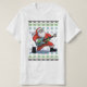 Um design feio da camisola do falso com rockin do papai noel uma guitarra elétrica de turquesa com os crânios e os flocos de neve que caem no fundo. T-shirt, cartões, presentes da novidade.